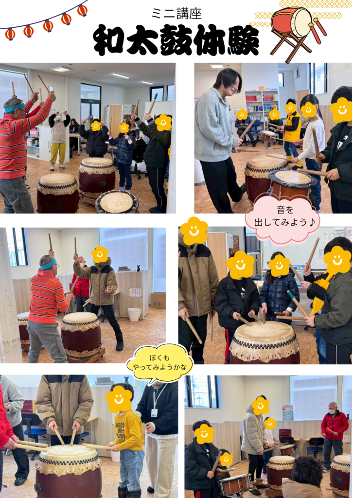 花巻市の「出前講座」制度を利用して和太鼓の体験を行いました。