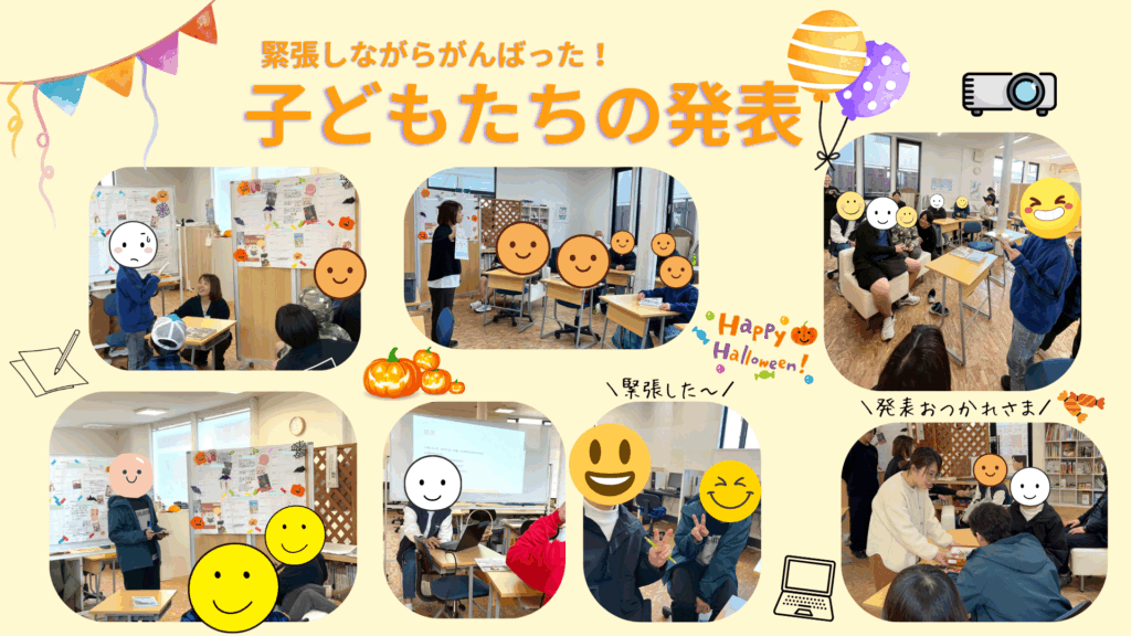 発表に対して苦手意識のある子が多かったのですが、本に触れ本から学ぶこともあり、人の発表から学ぶところもあり、自分の言葉で人に伝えるという大きな経験もした子どもたちでした。いつもフリースクールに本を持ってきてくれる花巻市立図書館の谷藤司書さんにも来ていただき、感謝を伝えることができたことも大きな成果につながりました✨これからも本に触れる機会をどんどん増やしていってほしいと思います(^^)