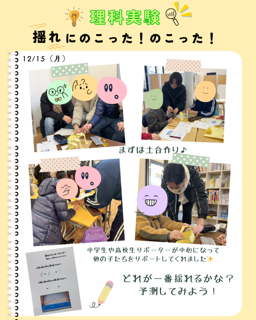 12月中旬、キャリノバで初めての理科実験が行われました!